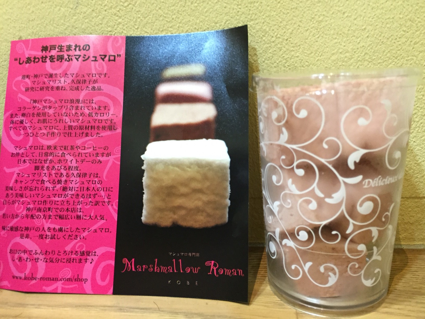 この間、神戸生まれの「しあわせを呼ぶマシュマロ」をお客様にいただきました (*≧▽≦*)